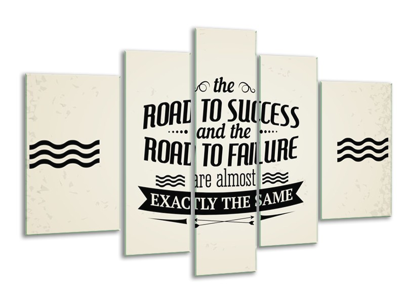 Canvas Schilderij Tekst, Modern | Crème, Zwart | 170x100cm 5Luik