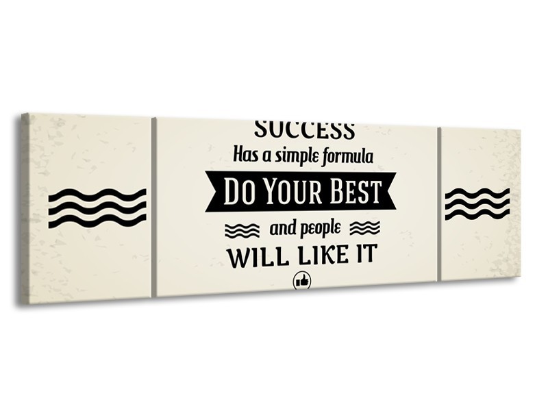 Canvas Schilderij Tekst, Modern | Crème, Zwart | 170x50cm 3Luik