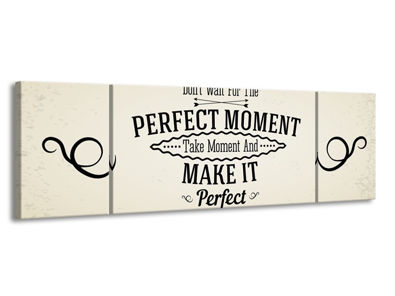 Canvas Schilderij Tekst, Modern | Crème, Zwart | 170x50cm 3Luik