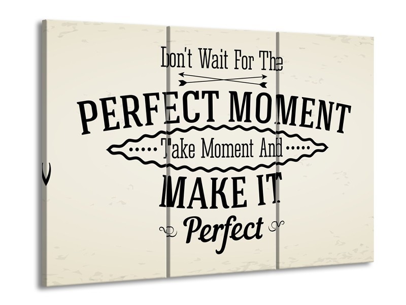 Canvas Schilderij Tekst, Modern | Crème, Zwart | 60x90cm 3Luik