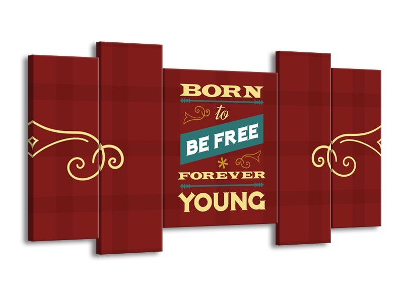 Canvas Schilderij Tekst, Modern | Geel, Bruin, Rood | 120x65cm 5Luik