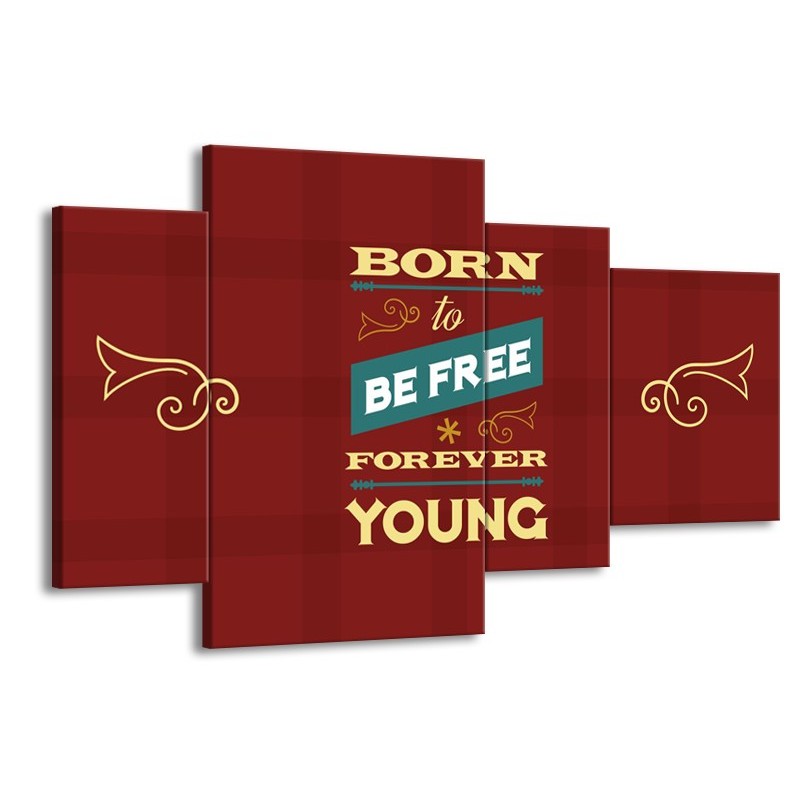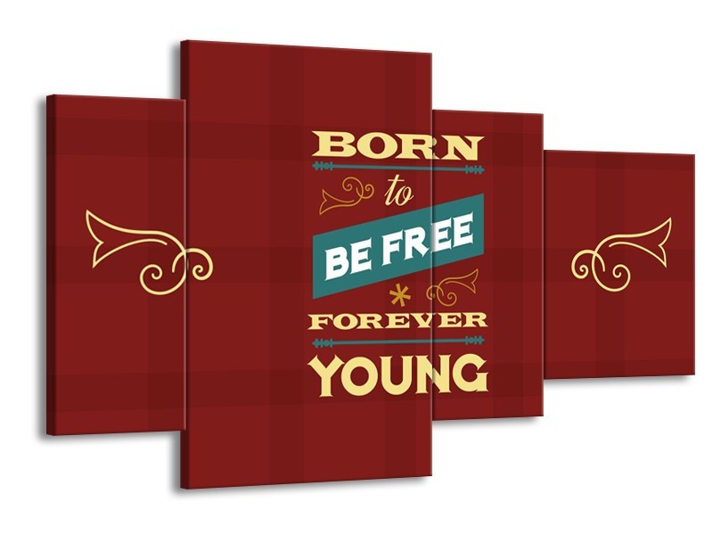 Canvas Schilderij Tekst, Modern | Geel, Bruin, Rood | 120x75cm 4Luik