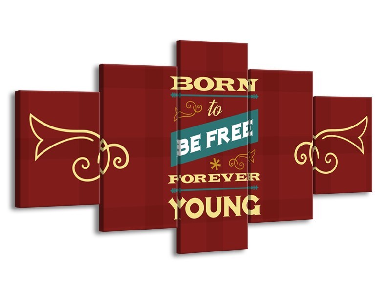 Canvas Schilderij Tekst, Modern | Geel, Bruin, Rood | 150x80cm 5Luik