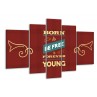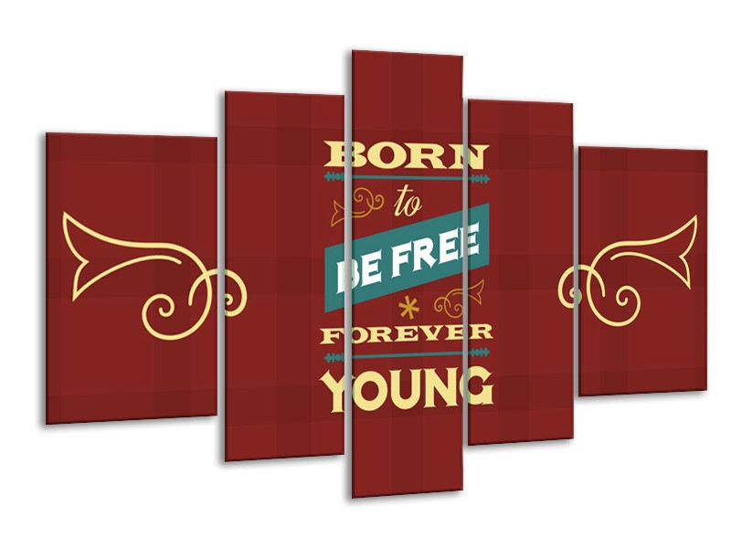 Canvas Schilderij Tekst, Modern | Geel, Bruin, Rood | 170x100cm 5Luik
