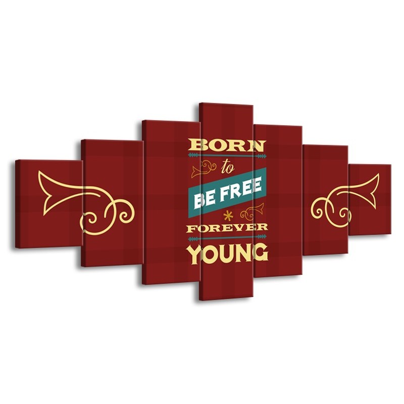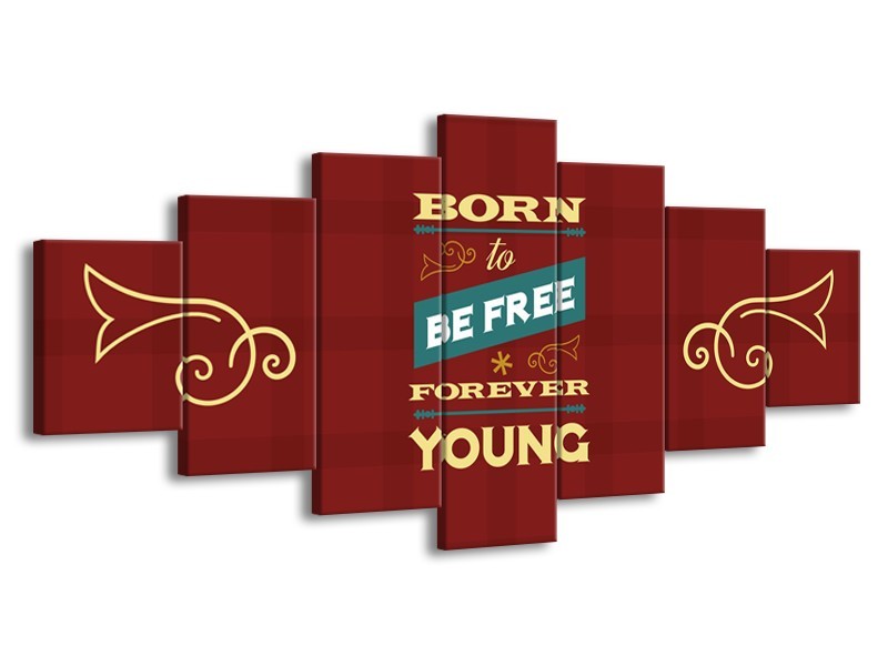 Canvas Schilderij Tekst, Modern | Geel, Bruin, Rood | 210x100cm 7Luik