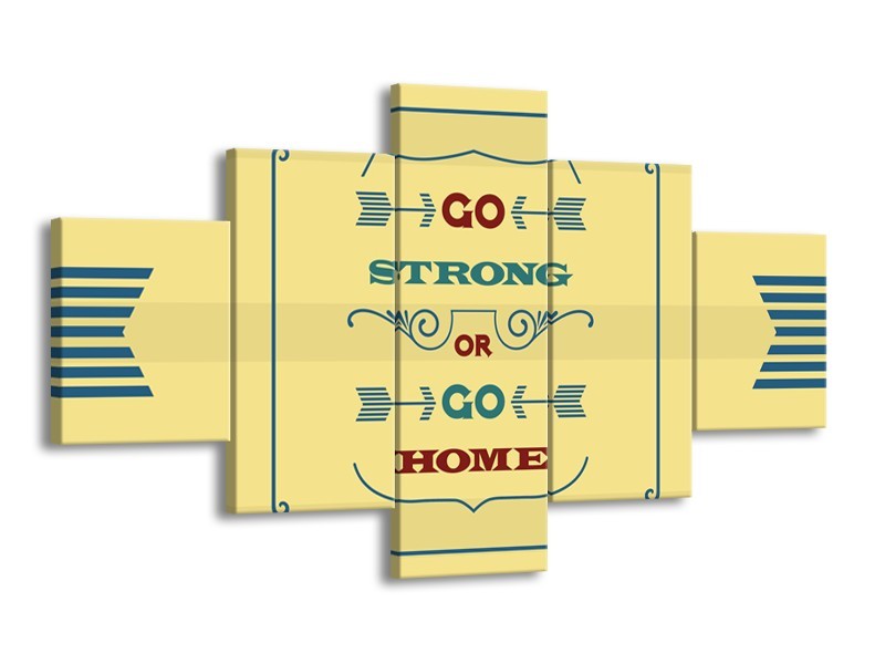 Canvas Schilderij Tekst, Modern | Geel, Grijs | 125x70cm 5Luik