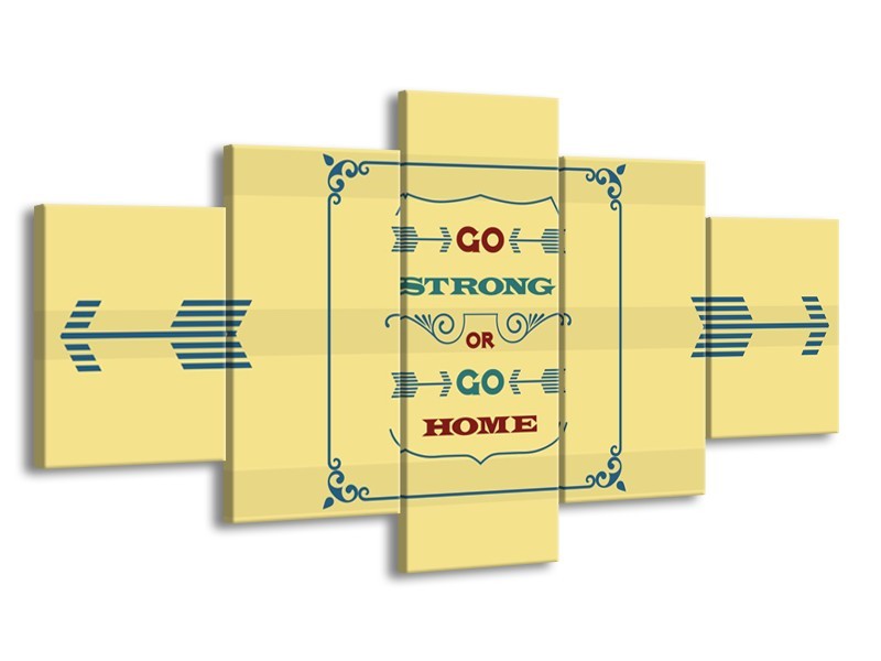 Canvas Schilderij Tekst, Modern | Geel, Grijs | 150x80cm 5Luik
