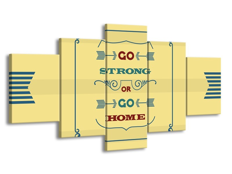 Canvas Schilderij Tekst, Modern | Geel, Grijs | 150x80cm 5Luik