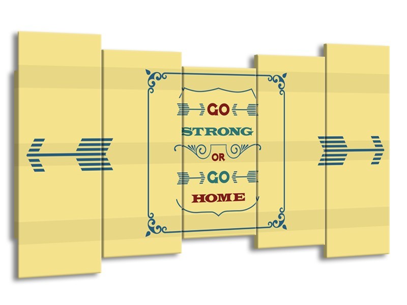 Canvas Schilderij Tekst, Modern | Geel, Grijs | 150x80cm 5Luik