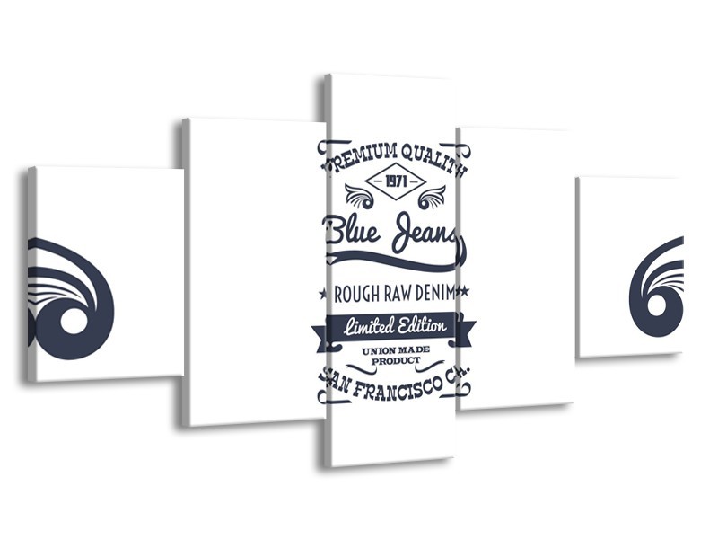 Canvas Schilderij Tekst, Modern | Wit | 150x80cm 5Luik