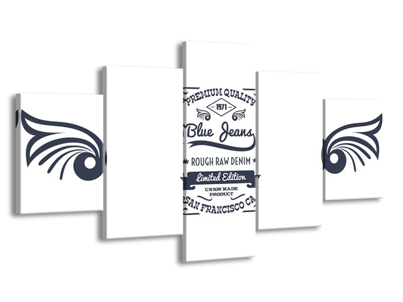 Canvas Schilderij Tekst, Modern | Wit | 150x80cm 5Luik