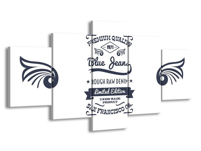 Canvas Schilderij Tekst, Modern | Wit | 150x80cm 5Luik