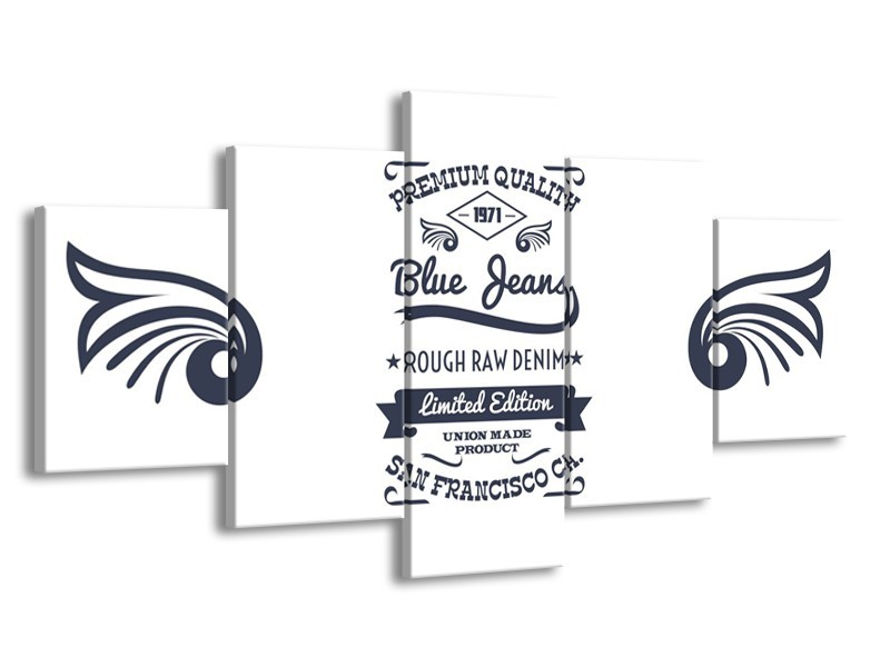 Canvas Schilderij Tekst, Modern | Wit | 150x80cm 5Luik