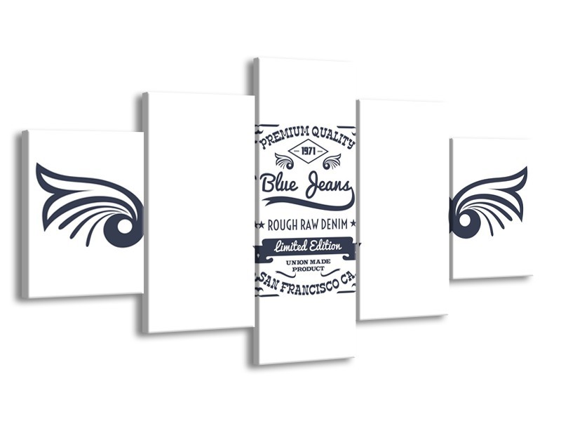 Canvas Schilderij Tekst, Modern | Wit | 150x80cm 5Luik