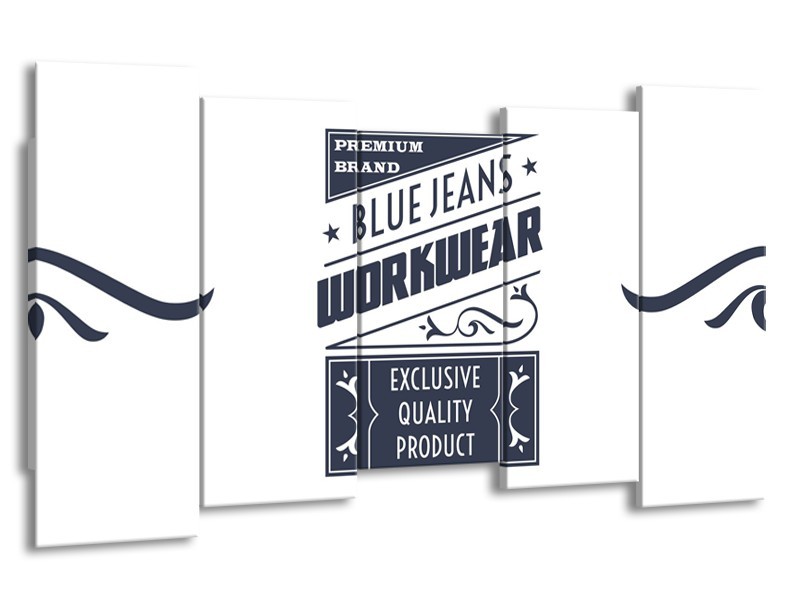 Canvas Schilderij Tekst, Modern | Wit | 150x80cm 5Luik