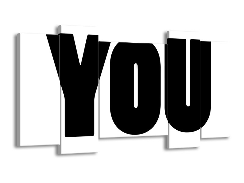 Canvas Schilderij Tekst | Wit, Zwart | 120x65cm 5Luik