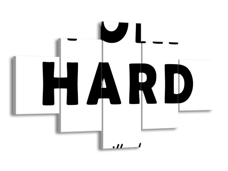 Canvas Schilderij Tekst | Zwart, Wit | 125x70cm 5Luik