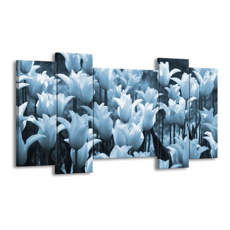 Canvas Schilderij Tulpen, Bloemen | Blauw, Grijs | 120x65cm 5Luik