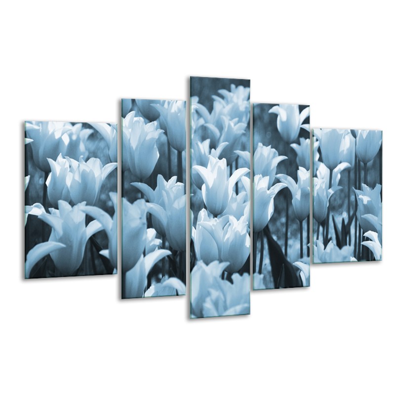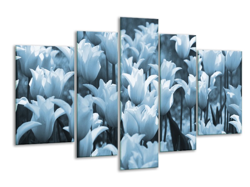 Canvas Schilderij Tulpen, Bloemen | Blauw, Grijs | 170x100cm 5Luik
