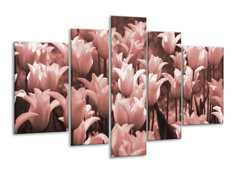 Canvas Schilderij Tulpen, Bloemen | Bruin, Rood | 170x100cm 5Luik