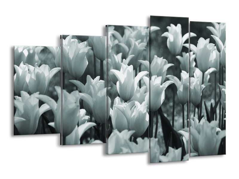 Canvas Schilderij Tulpen, Bloemen | Grijs, Groen | 150x100cm 5Luik