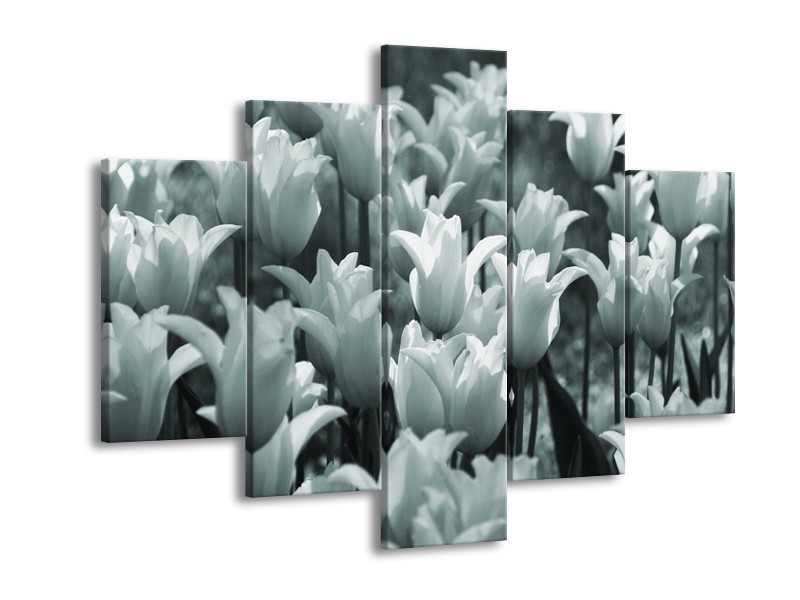 Canvas Schilderij Tulpen, Bloemen | Grijs, Groen | 150x105cm 5Luik