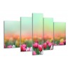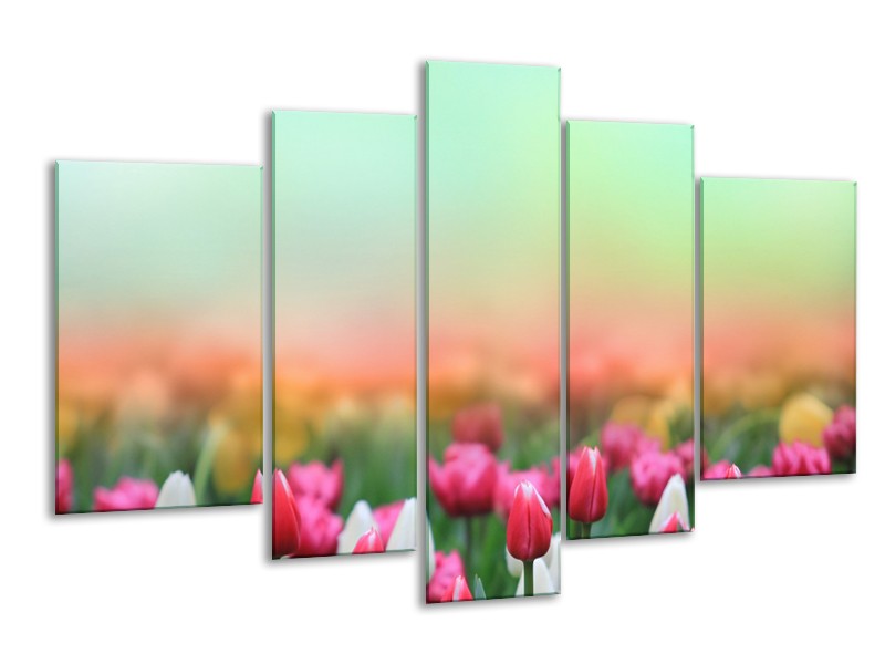 Canvas Schilderij Tulpen, Bloemen | Groen, Roze, Wit | 170x100cm 5Luik