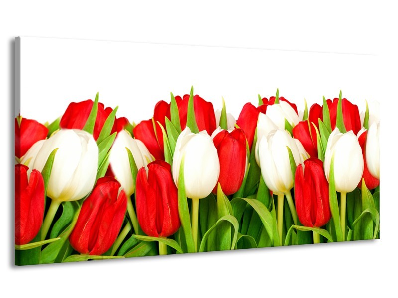 Canvas Schilderij Tulpen, Bloemen | Rood, Wit, Groen | 170x90cm 1Luik