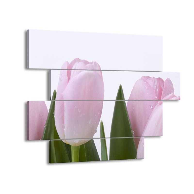 Canvas Schilderij Tulpen, Bloemen | Roze, Wit | 115x85cm 4Luik