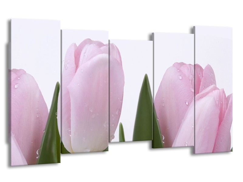 Canvas Schilderij Tulpen, Bloemen | Roze, Wit | 150x80cm 5Luik