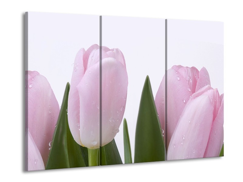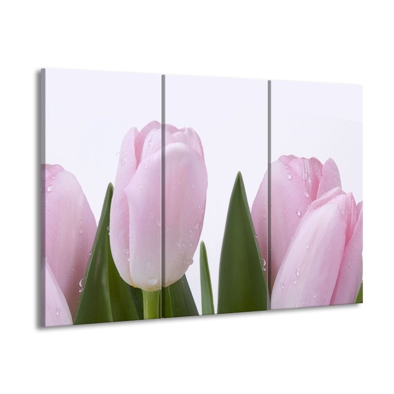 Canvas Schilderij Tulpen, Bloemen | Roze, Wit | 60x90cm 3Luik