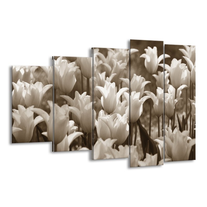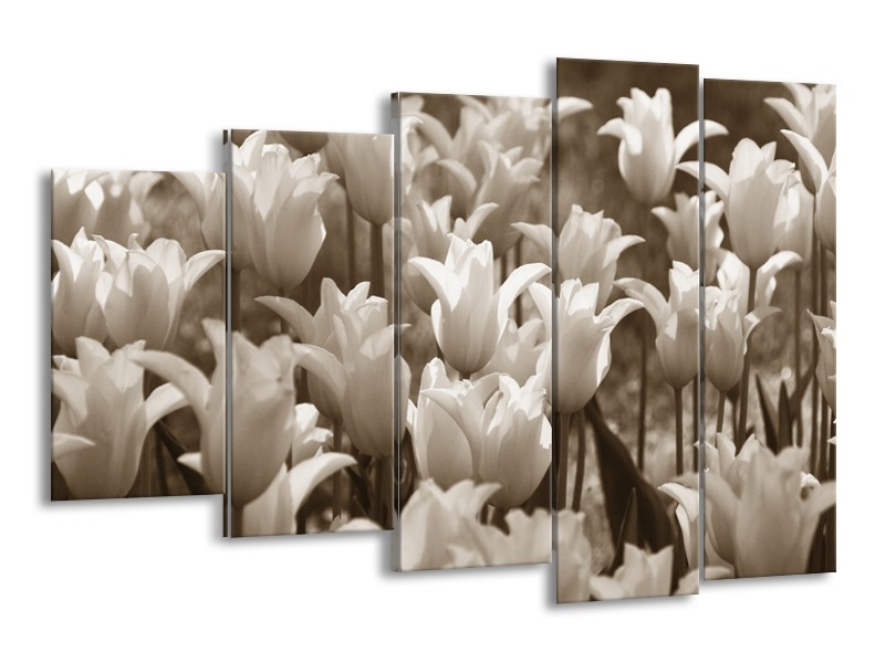 Canvas Schilderij Tulpen, Bloemen | Sepia | 150x100cm 5Luik