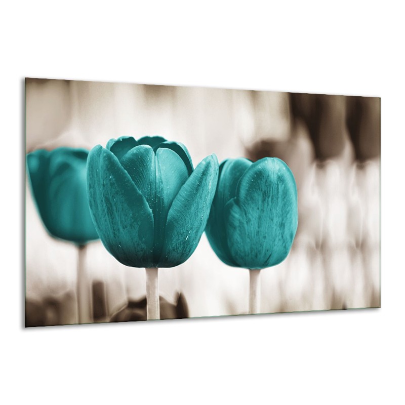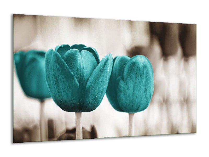 Canvas Schilderij Tulpen, Bloemen | Turquoise, Sepia | 120x70cm 1Luik