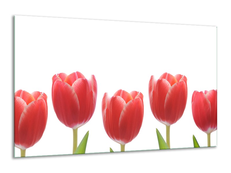 Canvas Schilderij Tulpen, Bloemen | Wit, Rood, Groen | 120x70cm 1Luik