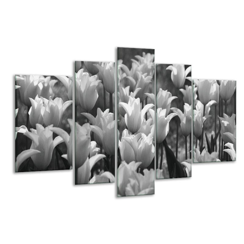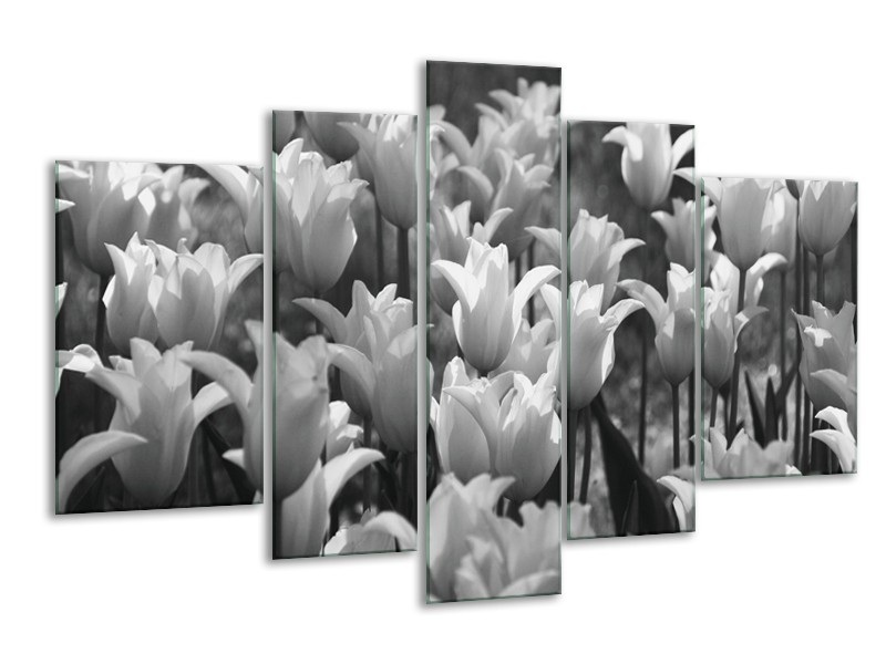 Canvas Schilderij Tulpen, Bloemen | Zwart, Grijs | 170x100cm 5Luik