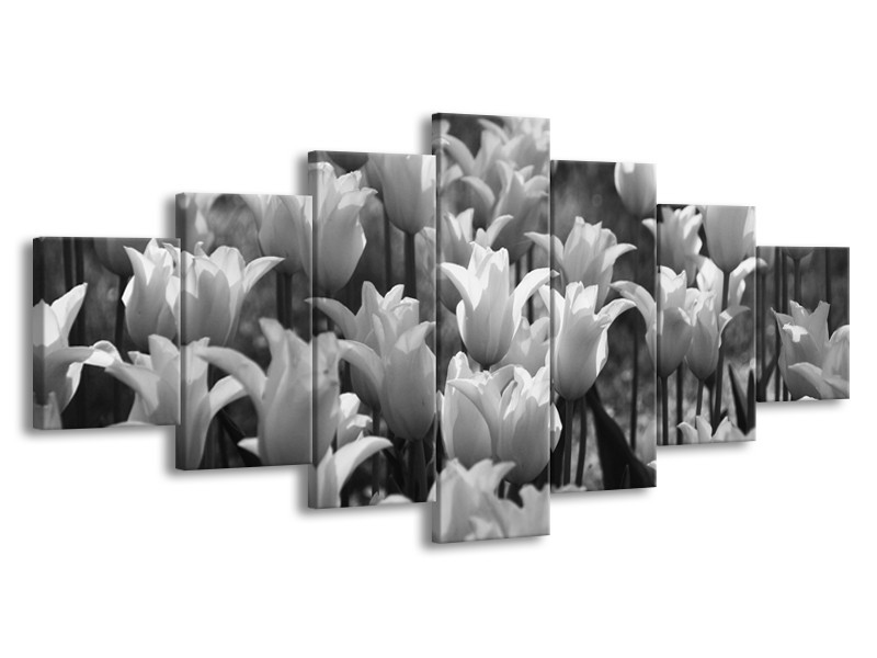 Canvas Schilderij Tulpen, Bloemen | Zwart, Grijs | 210x100cm 7Luik