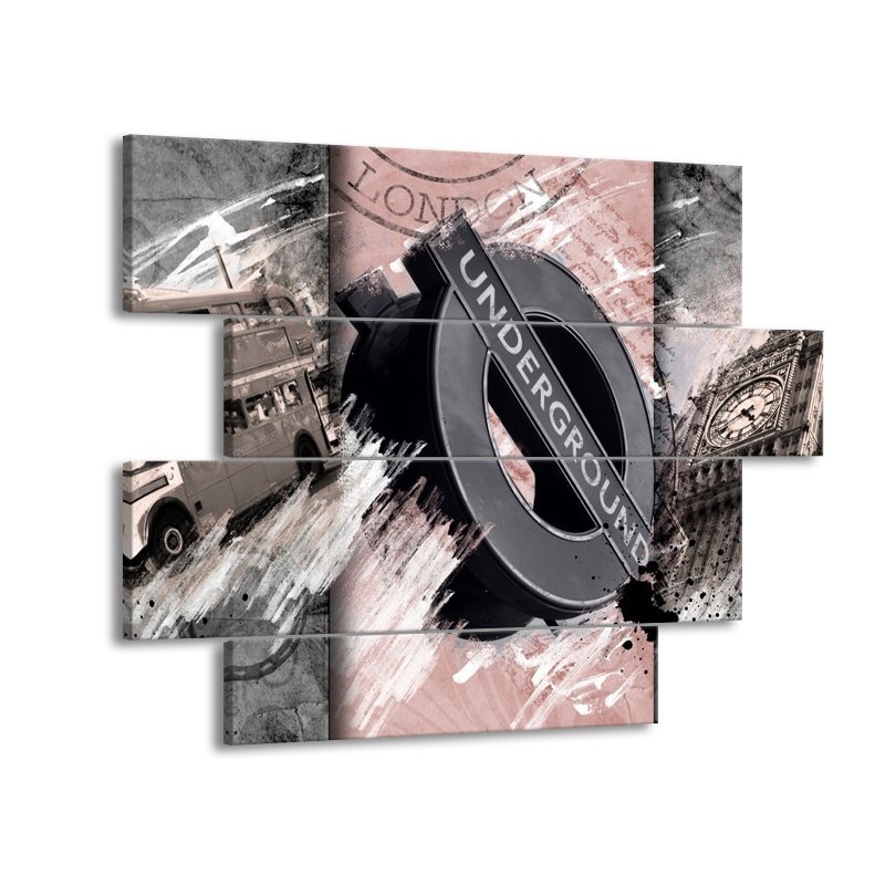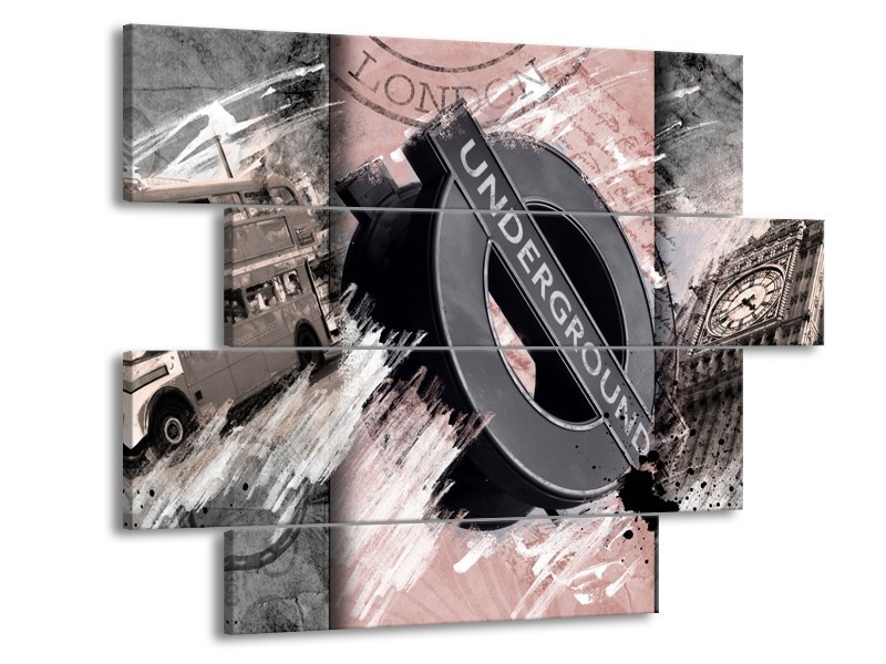 Canvas Schilderij Underground, Engeland | Grijs, Bruin, Rood | 115x85cm 4Luik