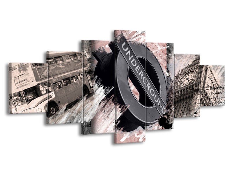 Canvas Schilderij Underground, Engeland | Grijs, Bruin, Rood | 210x100cm 7Luik