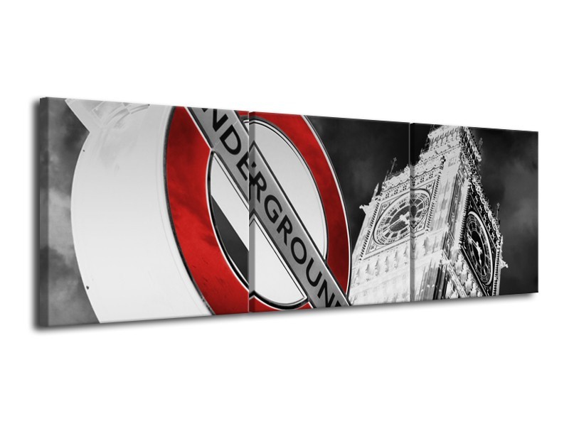 Canvas Schilderij Underground, Engeland | Grijs, Rood, Zwart | 120x40cm 3Luik