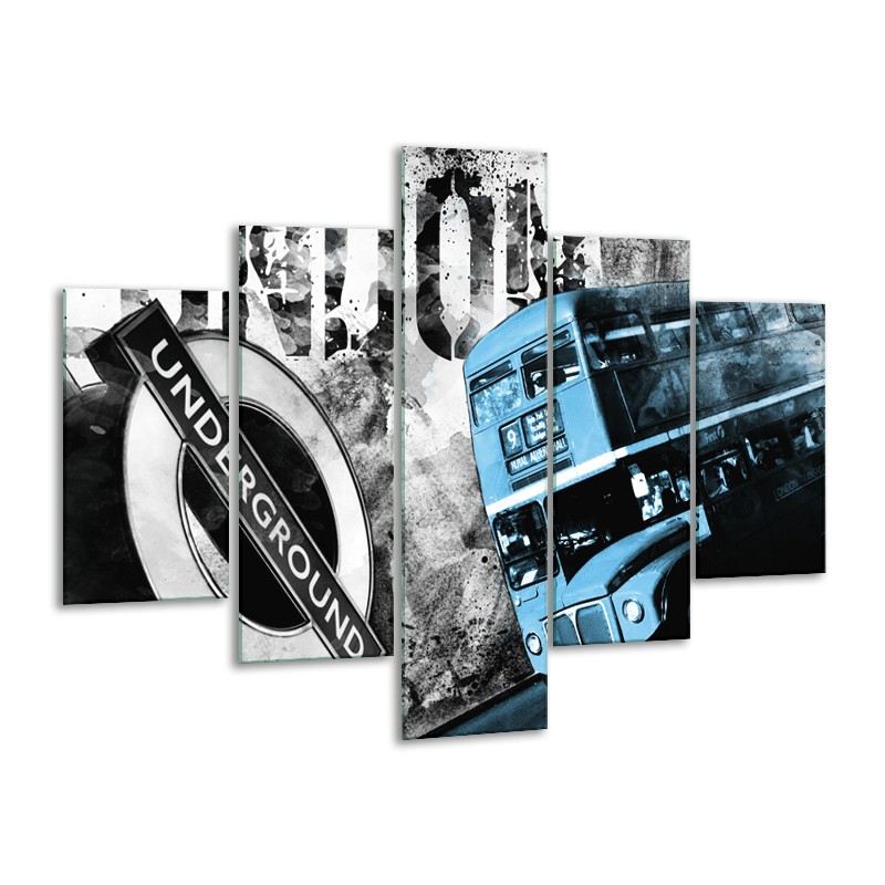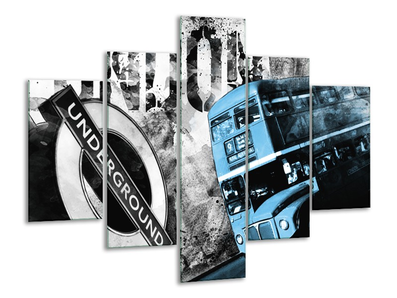 Canvas Schilderij Underground, Engeland | Zwart, Wit, Blauw | 100x70cm 5Luik