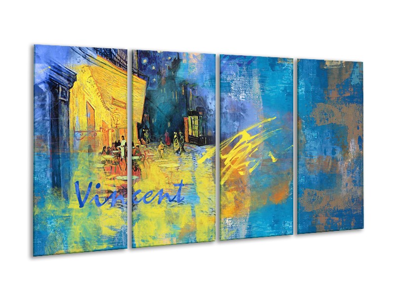 Canvas Schilderij Van Gogh, Modern | Blauw, Geel | 160x80cm 4Luik