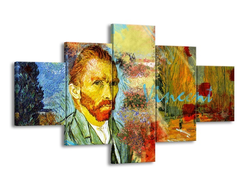 Canvas Schilderij Van Gogh, Modern | Oranje, Geel, Bruin | 125x70cm 5Luik