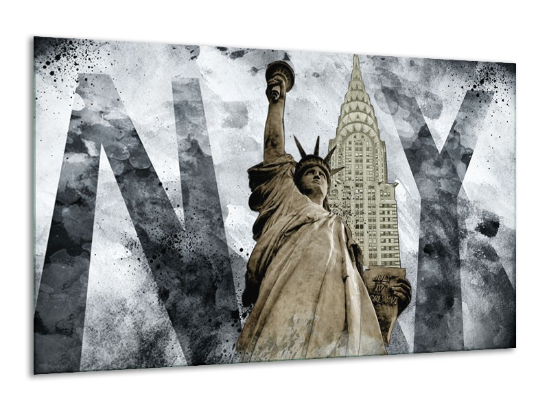 Canvas Schilderij Vrijheidsbeeld, New York | Grijs, Crème | 120x70cm 1Luik