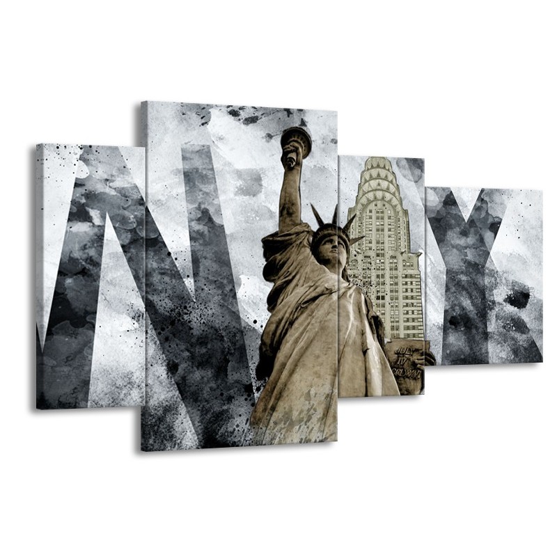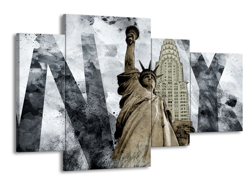 Canvas Schilderij Vrijheidsbeeld, New York | Grijs, Crème | 120x75cm 4Luik