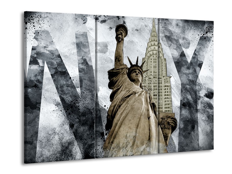 Canvas Schilderij Vrijheidsbeeld, New York | Grijs, Crème | 60x90cm 3Luik