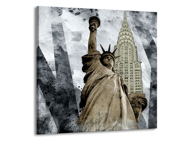 Canvas Schilderij Vrijheidsbeeld, New York | Grijs, Crème | 70x70cm 1Luik