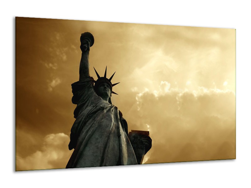 Canvas Schilderij Vrijheidsbeeld, New York | Grijs, Geel, Bruin | 120x70cm 1Luik