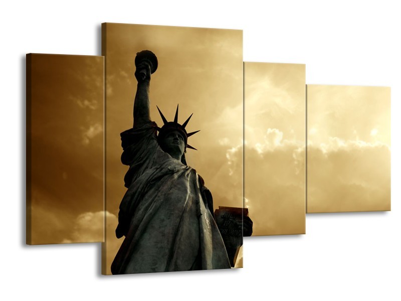 Canvas Schilderij Vrijheidsbeeld, New York | Grijs, Geel, Bruin | 120x75cm 4Luik