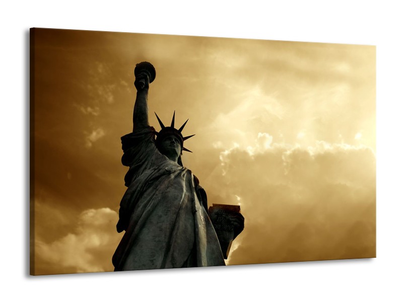 Canvas Schilderij Vrijheidsbeeld, New York | Grijs, Geel, Bruin | 140x90cm 1Luik