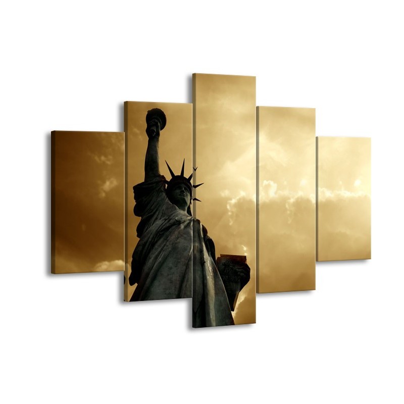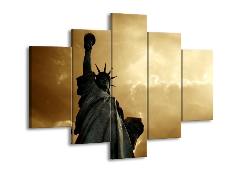 Canvas Schilderij Vrijheidsbeeld, New York | Grijs, Geel, Bruin | 150x105cm 5Luik